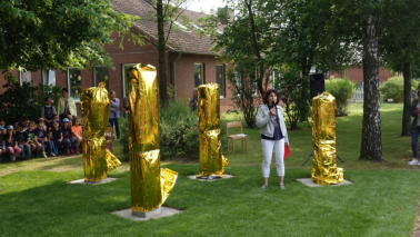 gemeinsam das Kunstwerk erarbeitet. Am Samstag, am internationaler Kindertag, war