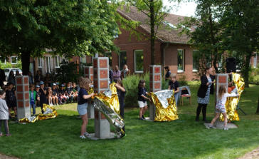 die Einweihung. Das Team der Grundschule und die Schülerinnnen und Schüler haben